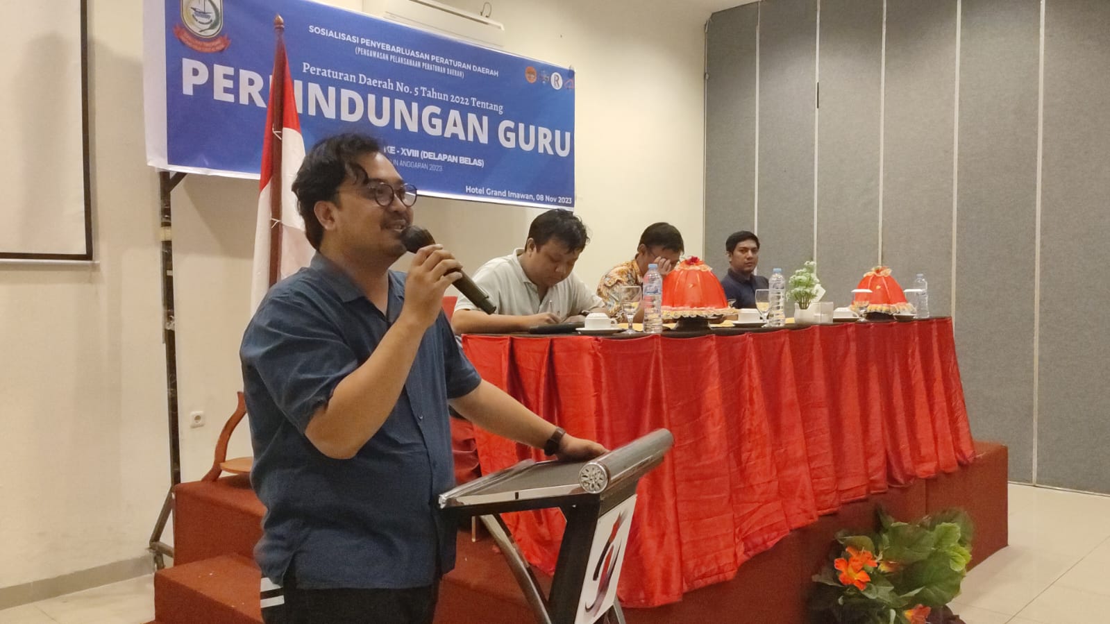 Makassar,Inisuslel.com – Anggota DPRD Kota Makassar, Syukran Kahfi menggelar Sosialisasi angkatan 18, Perda nomor 5 tahun 2022 tentang Perlindungan Guru, di Hotel Grand Imawan, Kamis (08/11/2023).