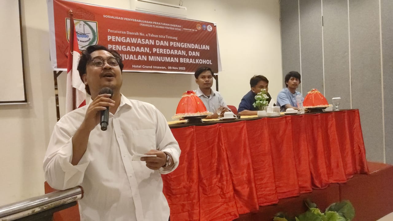 Makassar,Inisulsel.com – Anggota DPRD Kota Makassar, Syukran Kahfi menggelar sosialisasi angkatan 19, peraturan daerah (perda) nomor 4 tahun 2014 tentang pengawasan, pengendalian, pengadaan, peredaran dan penjualan minuman beralkohol di Hotel Grand Imawan, Kamis (09/11/2023).