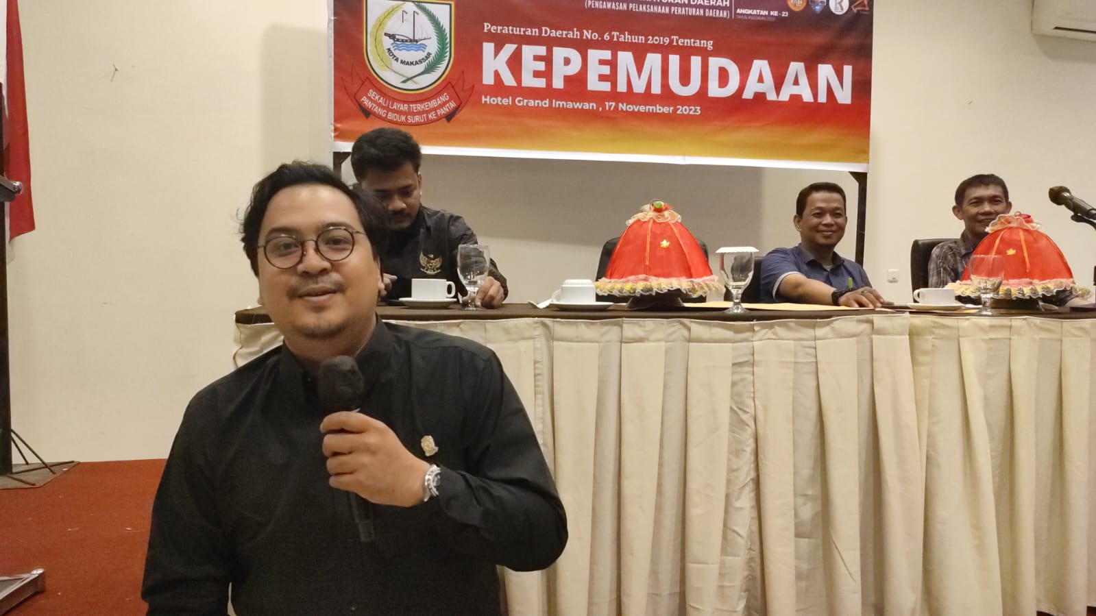 Makassar,Inisulsel.com – Anggota DPRD Kota Makassar, Syukran Kahfi melaksanakan sosialisasi Angkatan 23, peraturan daerah (perda) nomor 6 tahun 2019 tentang Kepemudaan. Kegiatan ini digelar di Hotel Grand Imawan, Jumat (17/11/2023).