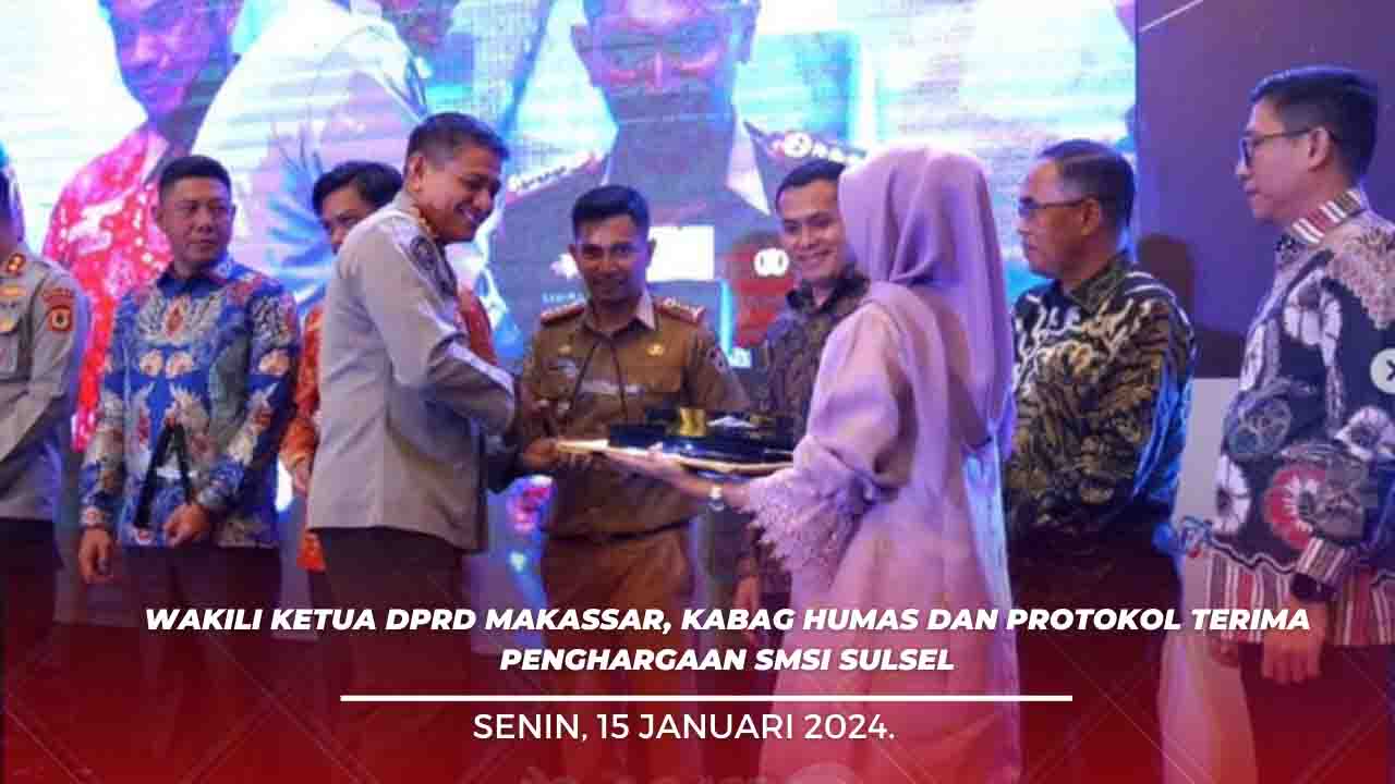 Wakili Ketua DPRD Makassar, Kabag Humas dan Protokol Terima Penghargaan SMSI Sulsel