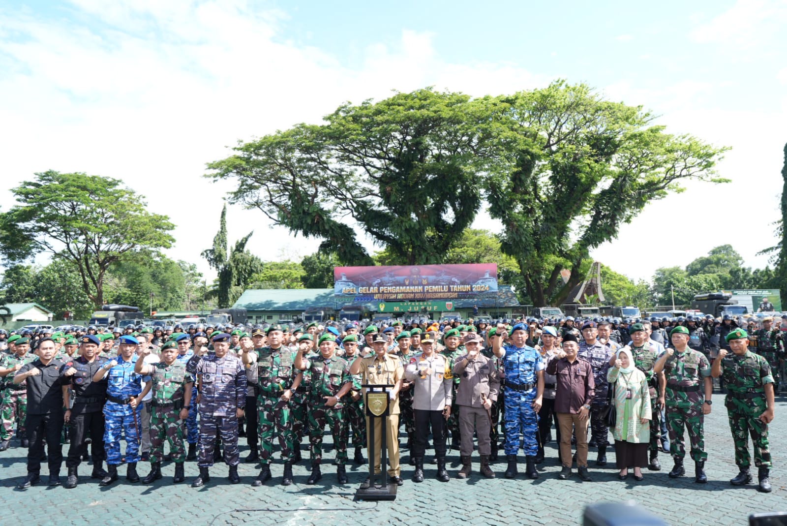 “Terima kasih atas kesiapan personil dan alat kelengkapan dalam rangka menghadapi pengamanan Pemilu dan menghadapi bencana alam yang kemungkinan akan timbul. Terima kasih, agar selalu berkoordinasi dengan Forkopimda dan seluruh elemen masyarakat di wilayahnya. Sehingga pelaksanaan Pemilu bisa berjalan dengan lancar, aman dan damai,” kata Panglima TNI, Jenderal TNI Agus Subiyanto.