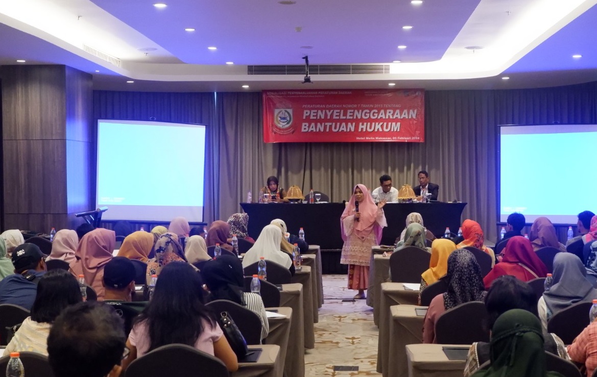 Kegiatan sosialisasi ini angkatan 1 ini bertema Peraturan Daerah (Perda) Nomor 7 Tahun 2015 tentang Penyelenggaraan Bantuan Hukum, di Hotel Melia Makassar, Senin (05/02/2024).