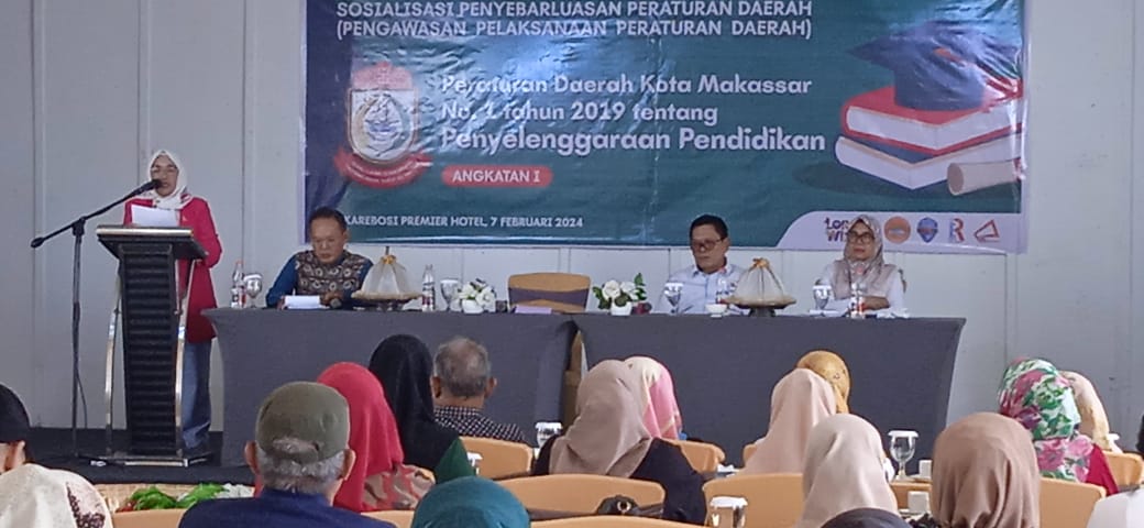 Makassar,Inisulsel.com – Anggota DPRD Makassar, Hj. Kartini menggelar sosialisasi angkatan 1, Peraturan Daerah (Perda) Penyelenggaraan Pendidikan di Hotel Karebosi Primer, Rabu (07/02/2024).