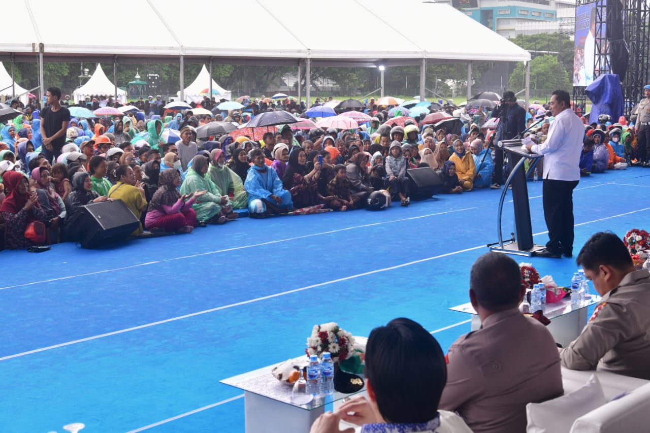 Dihadiri 13.000 warga, termasuk dari profesi ojol, penggali kubur dan pemandi jenazah. Penjabat Gubernur Sulsel, Bahtiar Baharuddin, mengatakan, kegiatan yang dilaksanakan saat sedang hujan ini membawa berkah.