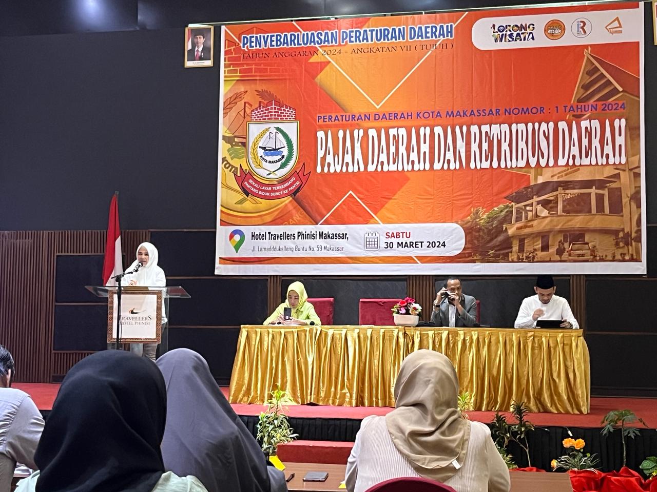 Makassar,Inisulsel.com – Anggota Dewan Perwakilan Rakyat (DPRD) Kota Makassar Irmawati Sila, melakukan sosialisasi Peraturan perundang-undangan Tahun Anggaran 2024 Angkatan VII terkait Peraturan Daerah (Perda) Kota Makassar Nomor  01 Tahun 2024 tentang Pajak Daerah dan Retribusi Daerah,  di Hotel Travellers, Makassar, Sabtu (30/03/2024).
