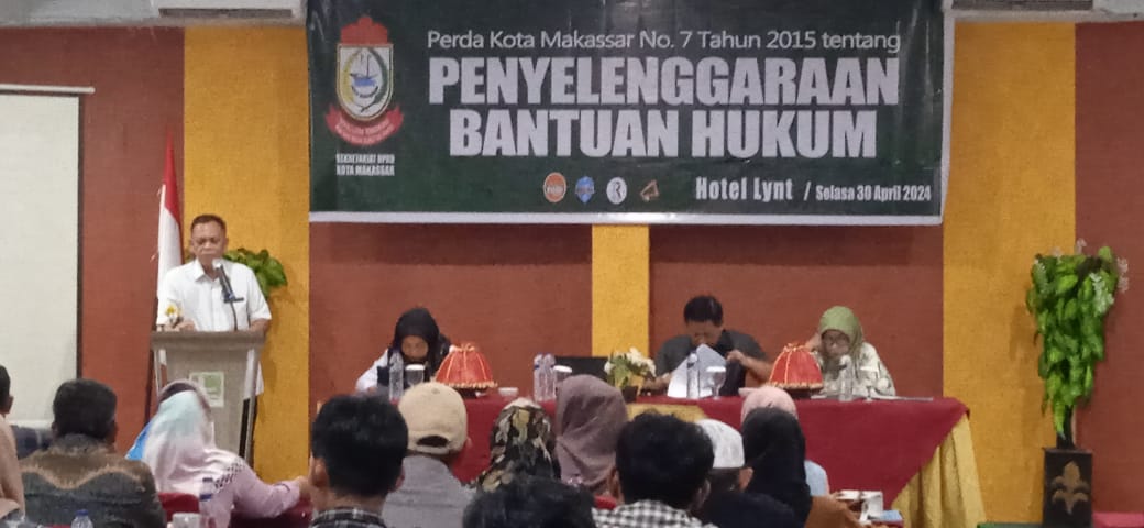 Makassar Inisulsel.com – Anggota DPRD Kota Makassar, Abd. Azis Namu menggelar sosialisasi Peraturan Daerah (Perda) Nomor 7 Tahun 2015 angkatan ketiga tentang Penyelenggaraan Bantuan Hukum, Tahun Anggaran 2024 di Hotel Lynt, Rabu (30/04/2024).