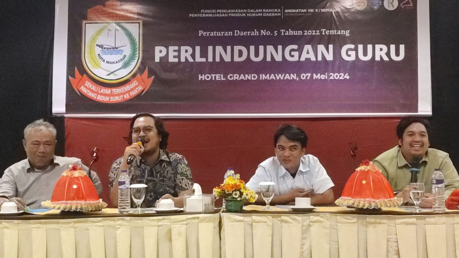 Hal ini diungkapkan Anggota DPRD Kota Makassar Syukran Kahfi saat membuka kegiatan Sosialisasi angkatan 10 Perda Nomor 5 Tahun 2022 Tentang Perlindungan Guru yang diselenggarakan Sekretariat DPRD Kota Makassar, di Hotel Grand Imawan, Selasa (07/05/2024).