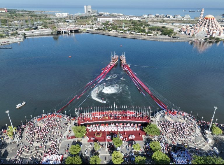 Makassar,Inisulsel.com -Memperingati HUT ke-79 Tahun Kemerdekaan Republik Indonesia, sebuah pemandangan megah terlihat di Pantai Losari, Sabtu pagi (17/08/202).
