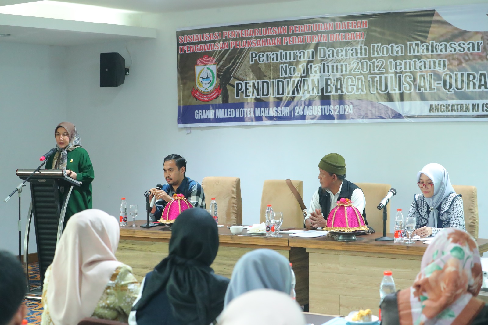 Kegiatan ini dihadiri oleh berbagai elemen masyarakat, mulai dari tokoh agama, pengurus masjid, guru, hingga orang tua siswa yang berlansung pada Sabtu (24/08/2024) di Hotel Grand Maleo. Anggota DPRD Fraksi Demokrat ini, menyampaikan bahwa perda ini merupakan upaya pemerintah kota untuk meningkatkan kemampuan baca tulis Al-Qur’an di kalangan anak-anak dan remaja.