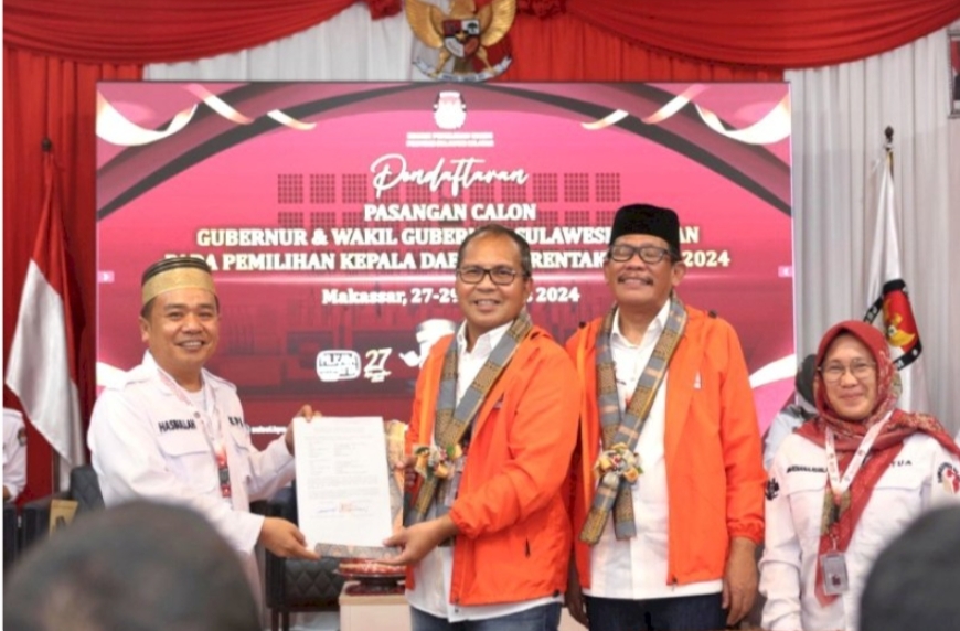 Makassar,Inisulsel.com – Pasangan Bakal Calon Gubernur dan Wakil Gubernur Sulsel, Moh Ramdhan Pomanto-Azhar Arsyad, diantar puluhan ribu simpatisan saat mendaftar ke Komisi Pemilihan Umum (KPU) Sulsel, Kamis (29/8/2024).