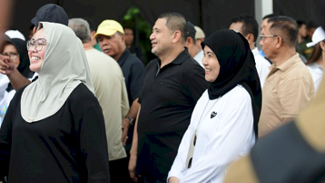Dalam gladi bersih tersebut, Munafri yang akrab disapa Appi tampil dengan kemeja hitam, sementara Aliyah mengenakan kemeja putih dipadukan dengan hijab hitam.
