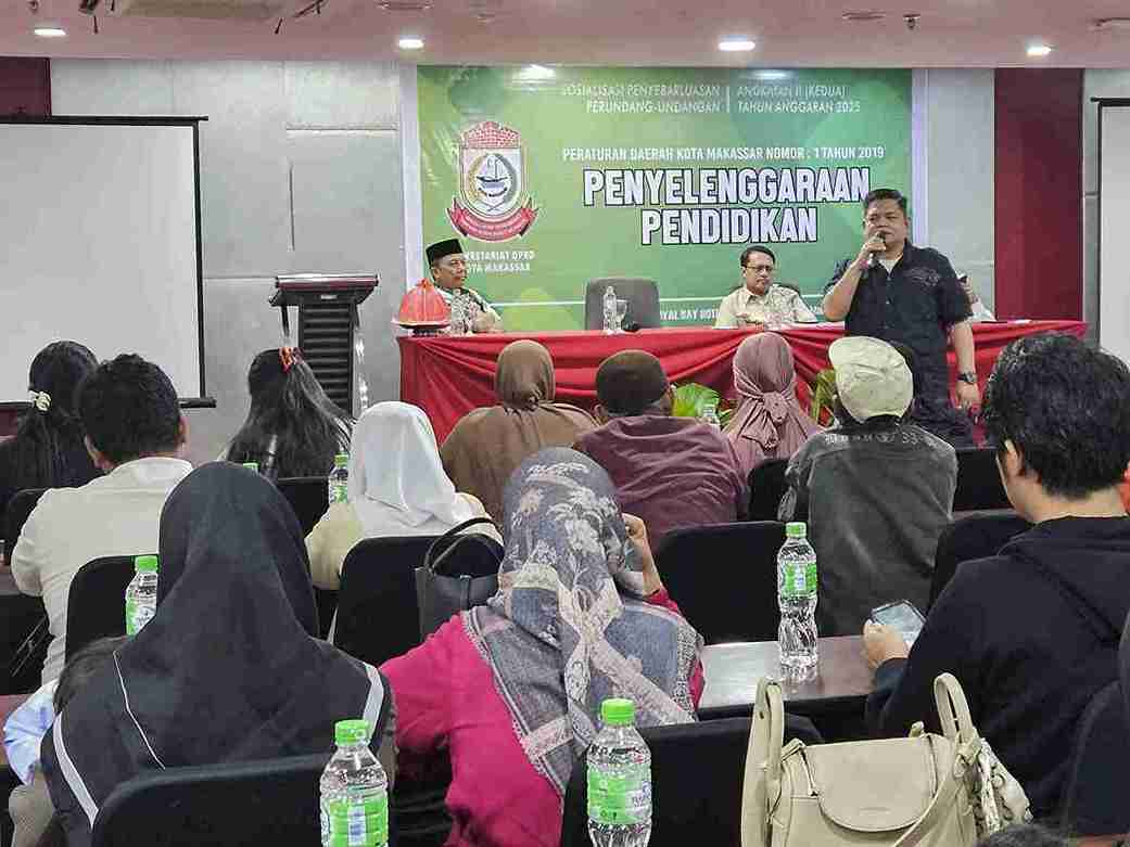 Makassar,Inisulsel.com– Anggota DPRD Kota Makassar, Fasruddin Rusli, S.H., menggelar sosialisasi angkatan 2, dengan tema Peraturan Daerah (Perda) Nomor 1 Tahun 2019 tentang Penyelenggaraan Pendidikan di Hotel Royal Bay, Makassar. Rabu (19/03/2025).