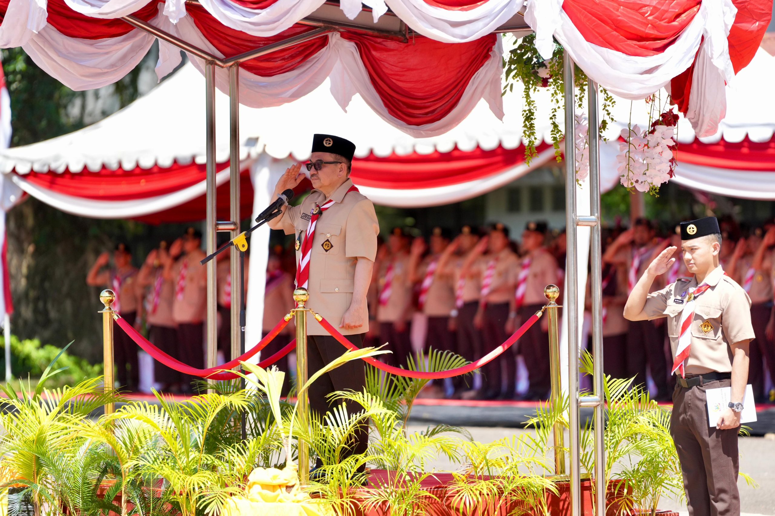 BARRU,INISULSEL.COM, – Sekretaris Daerah Provinsi Sulawesi Selatan (Sekdaprov Sulsel) yang juga Sekretaris Majelis Pembimbing Daerah (Mabida) Gerakan Pramuka Sulsel, Jufri Rahman, memimpin Apel Besar dalam rangka peringatan Hari Pramuka ke-64 tingkat daerah. Kegiatan ini berlangsung di Lapangan Kantor Bupati Barru, Kamis, 14 Agustus 2025. dengan mengusung tema Kolaborasi untuk Membangun Ketahanan Bangsa.