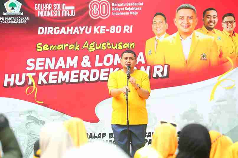 Hal itu disampaikan Munafri saat menghadiri kegiatan perayaan, lomba, dan seni budaya dalam rangka HUT ke-80 Republik Indonesia yang digelar DPD II Partai Golkar Kota Makassar di Jalan Lasinrang, Minggu (24/8/2025). Turut mendampingi, Ketua Kesatuan Perempuan Partai Golkar (KPPG) Kota Makassar, Melinda Aksa.