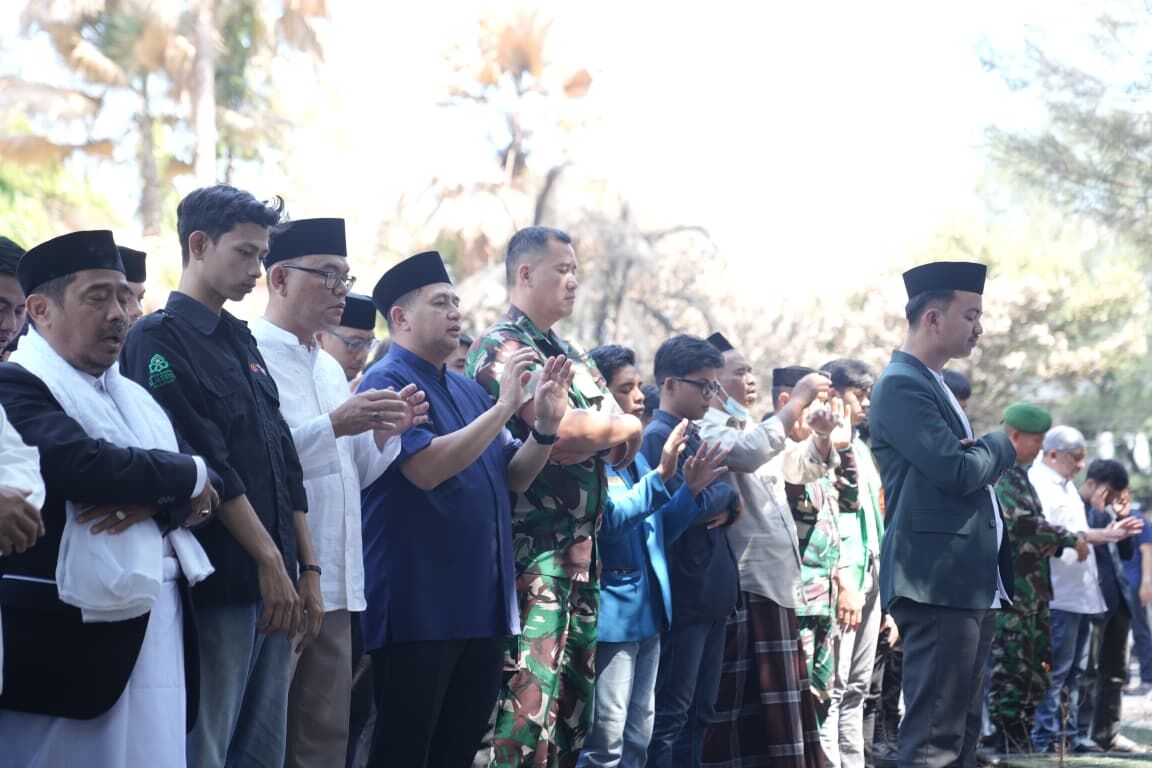 Wali Kota Makassar, Munafri Arifuddin, bersama jajaran SKPD, Forkopimda, Dandim, Kejari, anggota DPRD, hingga mahasiswa dari Badan Eksekutif Mahasiswa (BEM) se-Kota Makassar, berdiri dalam satu saf, menyatukan doa dan harapan.