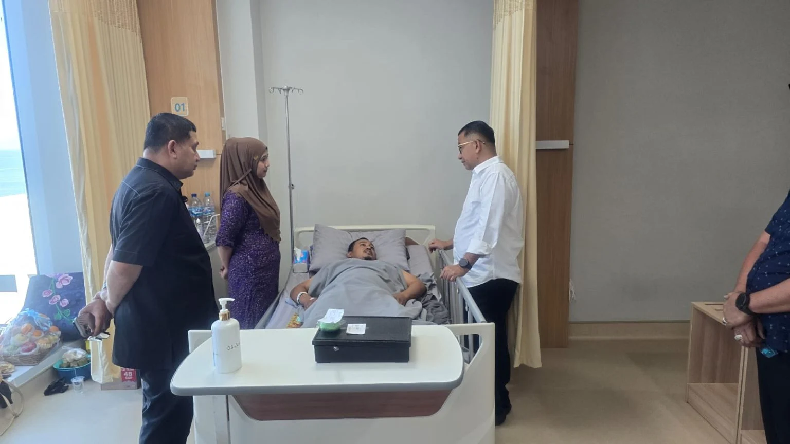 Kunjungan berlanjut ke RS Primaya Makassar, tempat Budi Haryadi, anggota Satpol PP paruh waktu sekaligus pengemudi Grab, dirawat intensif di ruang ICU. Kehadiran pejabat daerah dan pusat itu menjadi penguat moril bagi keluarga yang menunggu di rumah sakit.