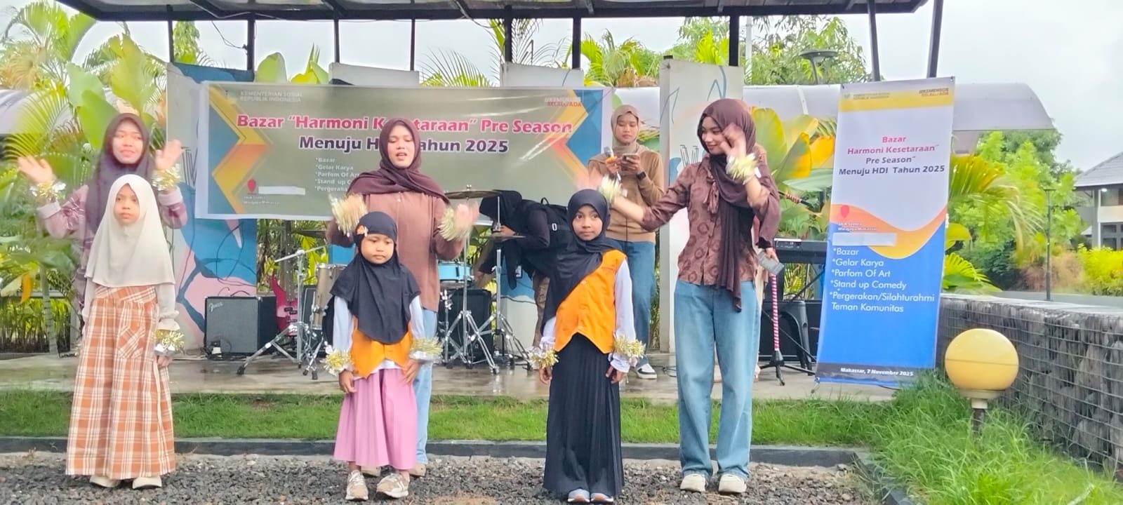 Selain gelar karya produk dan jasa yang dihasilkan penyandang disabilitas, baik produk kerajinan tangan, makanan dan minuman. Bazar Harmoni kesetaraan juga menampilkan fashion show dari anak-anak rentan, dan juga penampilan musik, baik persembahan dari Organisasi Penyandang Disabilitas (Opdis), maupun penampilan Band dari Penerima Manfaat layanan Rehabilitasi Sosial di Sentra Wirajaya. pelaksanaannya berlangsung sejak sore hingga malam hari, bertempat di Sentra Kreasi Atensi (SKA) Sentra Wirajaya Makassar, Jumat (07/11/25).