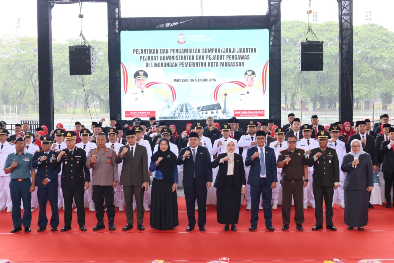 Dalam penataan birokrasi. Wali Kota Makassar, Munafri Arifuddin dan Wakil Wali Kota Aliyah Mustika Ilham, resmi melantik 106 pejabat administrator dan pengawas lingkup Pemkot Makassar hasil mutasi jabatan perdana tahun 2026.