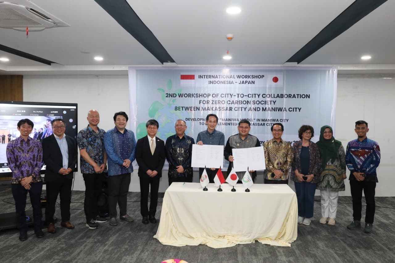 Peresmian kolaborasi internasional ini dihelat di Makassar Governement Center (MGC), Jumat (13/02/2026). Dihadiri Wali Kota Maniwa Ota Noburo, secara daring, Wakil Menteri Lingkungan Hidup Jepang Kentaro Doi bersama rombongan, Rektor Universitas Hasanuddin Prof. Jamaluddin Jompa, serta jajaran SKPD lingkup Pemkot Makassar.
