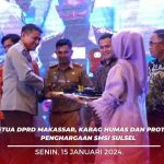 Wakili Ketua DPRD Makassar, Kabag Humas dan Protokol Terima Penghargaan SMSI Sulsel